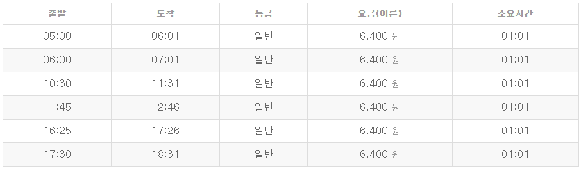 하루 6 회 운행하니 참고하고 이용하시기 바랍니다.