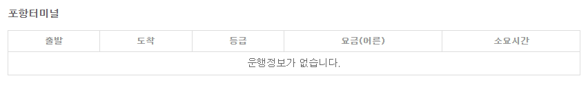 포항터미널 등으로 진행하는 출발 도착 안내입니다.